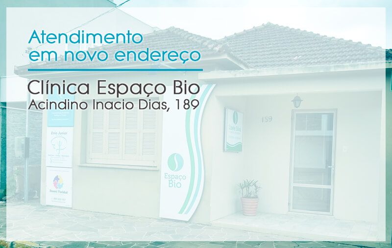 Estou atendendo em novo endereço. A partir de agora, os atendimentos serão realizados na Clínica Espaço Bio, localizada na Rua Acindino Inácio Dias, 189, no centro de Camaquã.