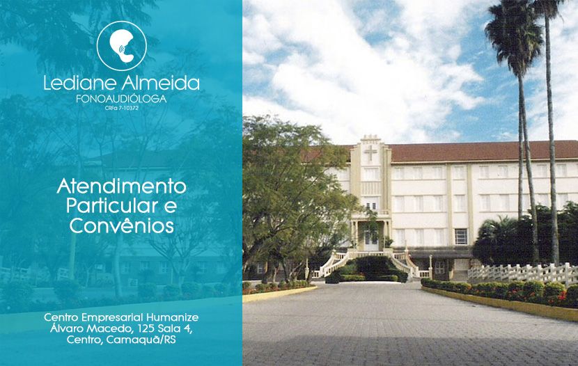 Para melhor recebê-los, a Fonoaudióloga Lediane Almeida está atendendo em novo endereço, Av. Olavo Moraes, 570, no Centro de Camaquã/RS.